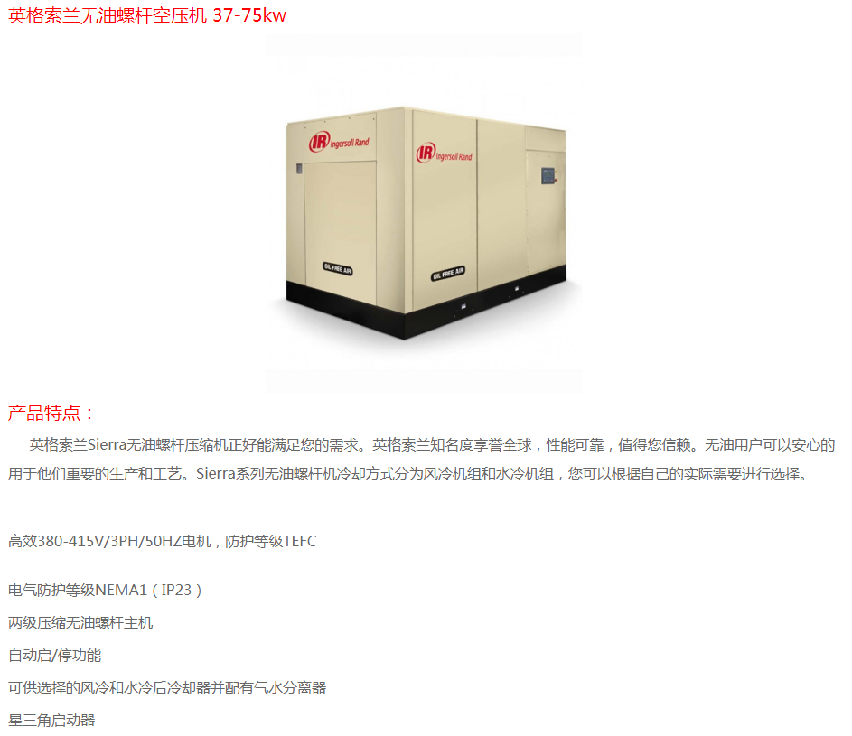 英格索蘭無(wú)油螺桿空壓機(jī) 37-75KW